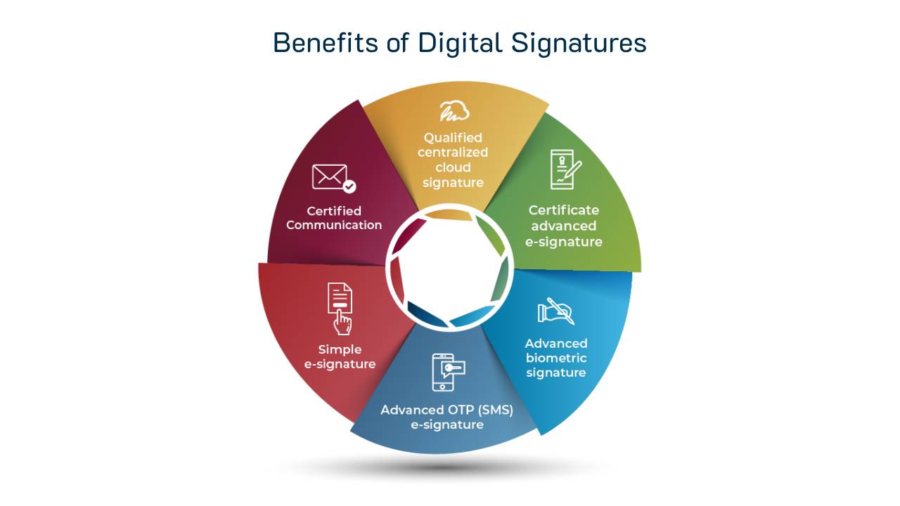 • การปฏิบัติตามกฎหมาย: ในหลายประเทศ ลายเซ็นต์ดิจิทัลมีสถานะทางกฎหมายเท่ากับลายเซ็นต์ที่เขียนด้วยมือ ซึ่งทำให้มันเป็นวิธีที่ได้รับการยอมรับทางกฎหมายในการเซ็นต์เอกสาร